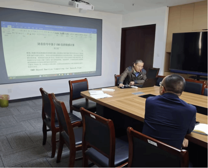 在会议上,王嘉琦老师向大家介绍了自己目前研究的课题“基于事件触发的非线性多智能体系统协同输出调节问题研究”,主要阐释了智能体系统在不同场景下的输出调节机制。秦宇强老师则以论文的形式向大家交流了自己的研究方向“语音信号中基于EMD法的情感计算”,并分享了自己工作以来的科研经历和相关成果。