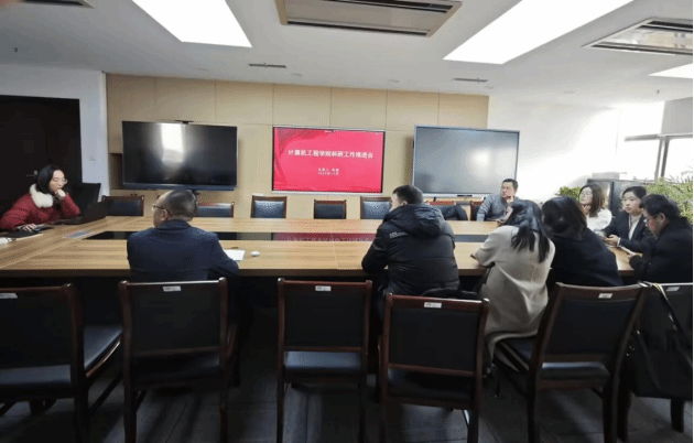 在科技楼2-523召开科研工作例会,会议由学院副院长朱俊主持,学院博士教师参加会议。