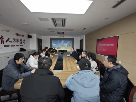 在科技楼2-523召开科研工作例会,会议由学院副院长朱俊主持,学院博士教师参加会议。