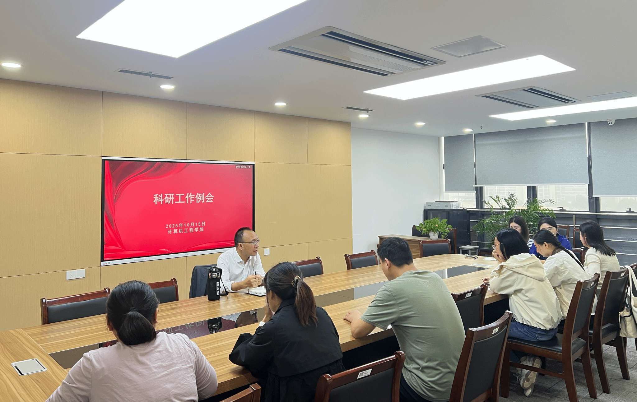 在科技楼523召开科研工作例会。会议由科研副院长朱俊主持,近五年引进博士参会。