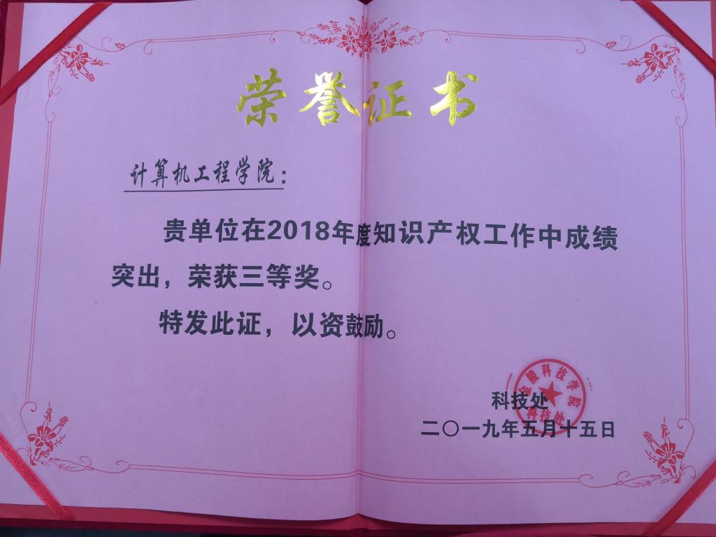 在2018年度知识产权工作中成绩突出,被评为专利工作先进单位并荣获三等奖。
