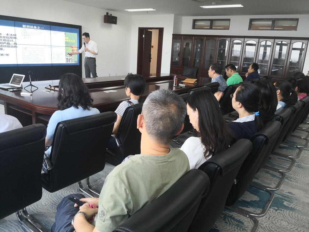 教师在科技楼2-710参加了由校科技处举办的专利知识讲座,此次讲座的主讲人是来自江苏圣典律师事务所的胡建华专利代理师。