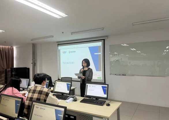 此次培训还邀请了国内知名的区块链技术专家,就区块链行业应用与高校区块链人才培养和专业建设进行了深入的剖析,从FISCO BCOS的背景、优势、发展现状、趋势、平台架构和行业应用案例、开源解决方案进行了分享,并从实践层面介绍了区块链网络的搭建和应用开发,让大家对于区块链有了更加直观和深入的认知。