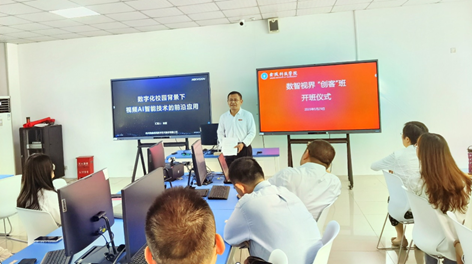 在大数据与区块链实验室(教学楼1118)举行了数智视界虚拟“创客”班开班仪式。教务处处长田祥宏教授、计算机学院王强副院长、大数据系马青霞副主任、南京海康威视的高级工程师梁莹应邀参加。