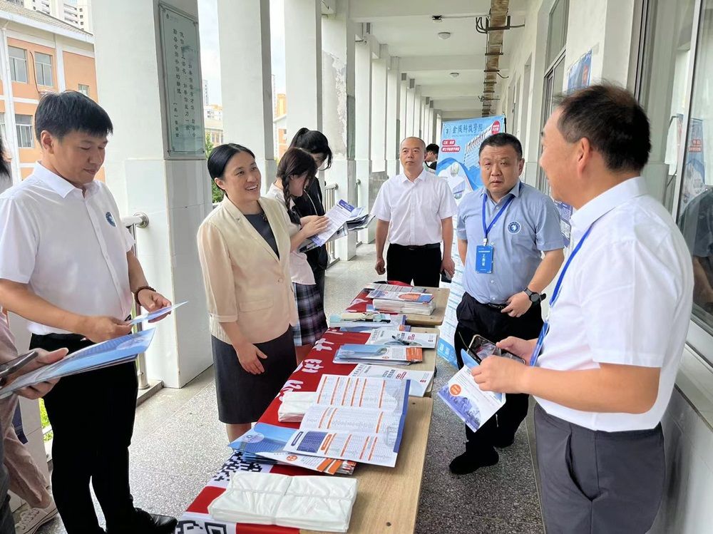 6月26日,校党委常委、纪委书记王靖华率队走进淮安市金湖中学、洪泽中学、淮安中学和新淮中学开展招生宣传,与计算机学院、电信学院负责人一起看望慰问我校驻淮片区的招生队伍。