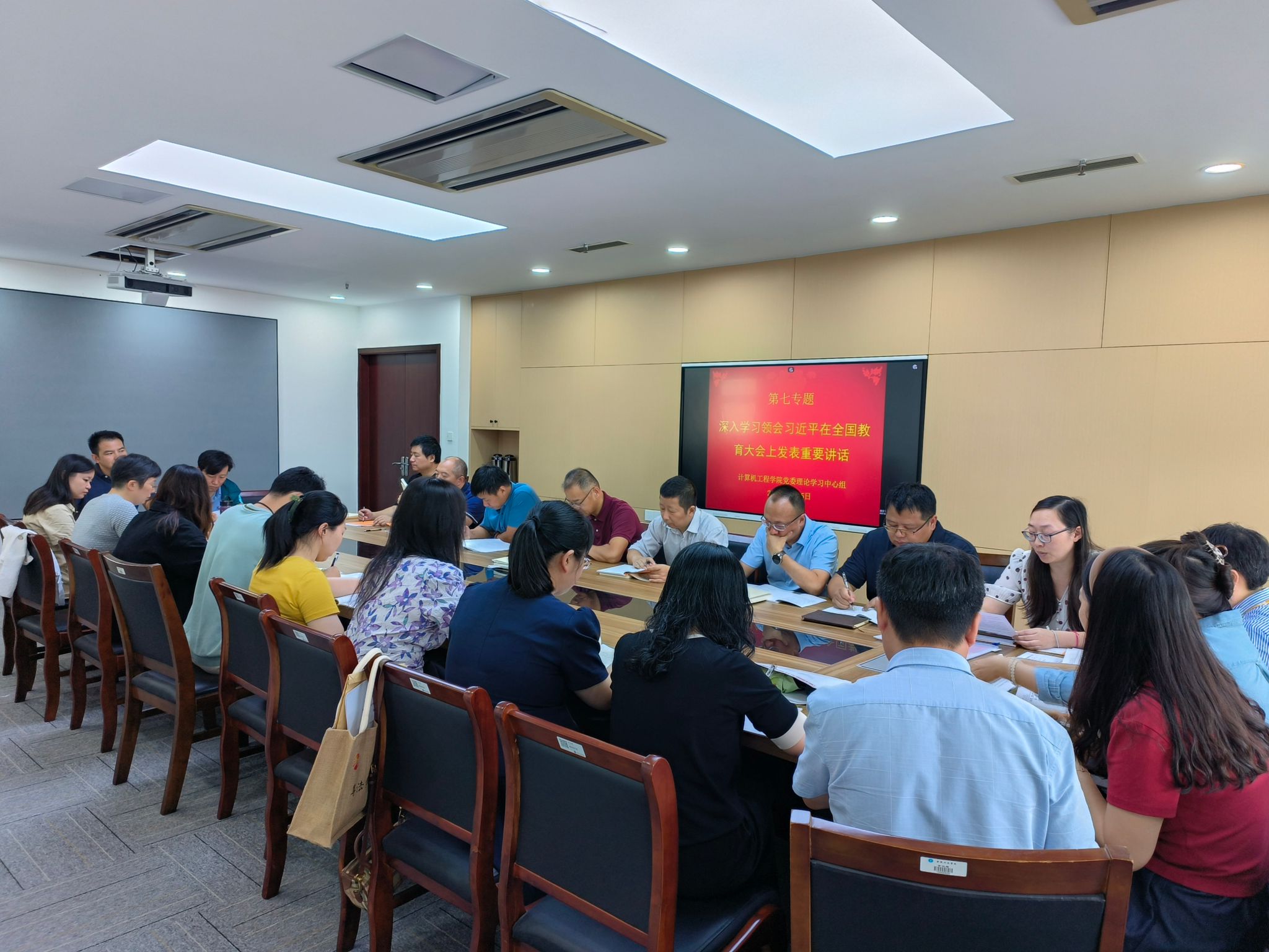 院党委副书记张昊、计算机科学与技术系主任封磊、计算机实验教学中心副主任田海梅、学生第二党支部书记胡鸣分别谈了学习体会。