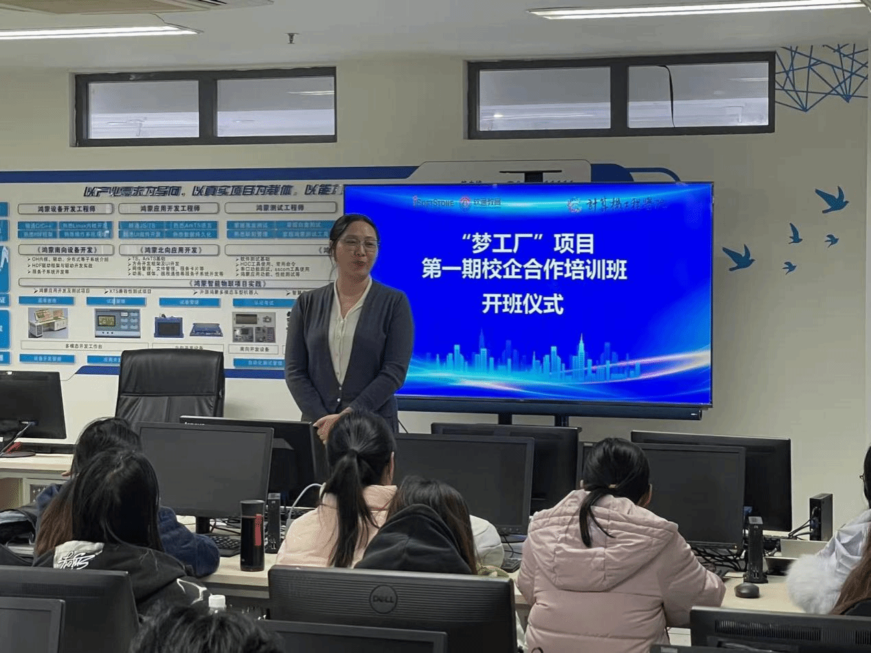 软通动力企业负责人黄海英就“梦工厂”项目的具体实施方式进行了介绍。她表示,学员将直接参与企业真实项目,实现校内知识与社会需求的有效衔接。通过系统化、实战化的训练,学生不仅能提升专业技术能力,也将在未来的实习与就业中占据先发优势。