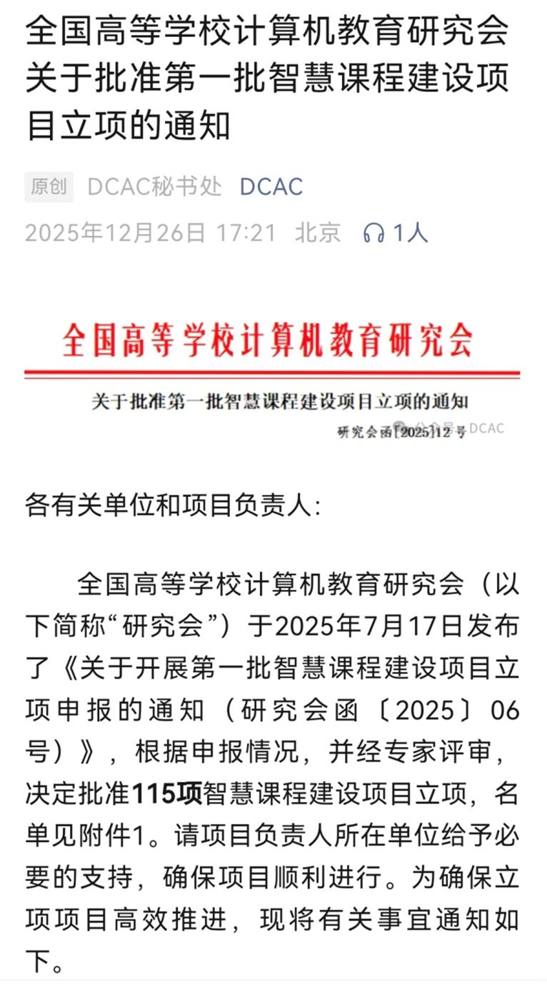 学院将以此为契机,严格按照研究会的建设标准与要求,全力支持项目团队开展工作,确保项目在一年周期内高质量完成。项目成果将同步至国家级“慧上课”平台,与全国高校共享,为提升计算机专业人才培养质量贡献“金科智慧”。此次两项课程的成功立项,必将进一步激发成人导航