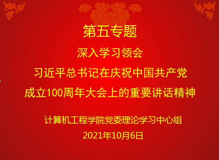 党委于10月6日上午开展2021年第五次中心组线上学习,此次学习主题为“深入学习领会习近平总书记在庆祝中国共产党成立100周年大会上的重要讲话精神”。学院党委书记陈冠亚主持学习。