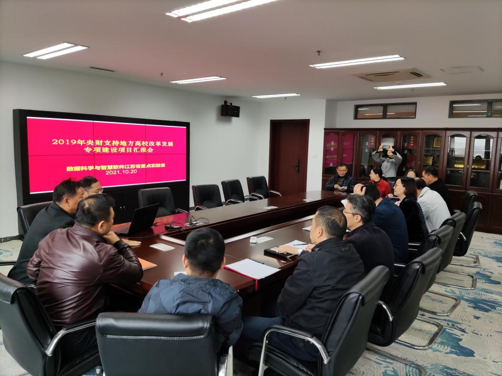 数据科学与智慧软件江苏省重点实验室主任苏守宝教授主持汇报会并简要介绍了重点实验室建设与发展的总体概况,重点实验室副主任王池社教授汇报了2019年央财专项支持的重点实验室三期建设项目实施情况、经费使用与绩效、主要建设成果、制度建设、以及下一步工作计划。重点实验室各分项目负责人及其团队能够严格、规范、积极地开展工作、取得了预期进展和重要成果,重点实验室于2020年通过验收。汇报中,规划处、科技处等提问了解有关情况,倪杰副校长对重点实验室建设给予了充分肯定,希望重点实验室进一步加强建设,鼓励项目团队充分发挥重点实验室平台作用,争取产出更多高水平成果。会后,倪杰副校长一行还查看并指导了重点实验室云计算数据中心机房和各研究室工作。