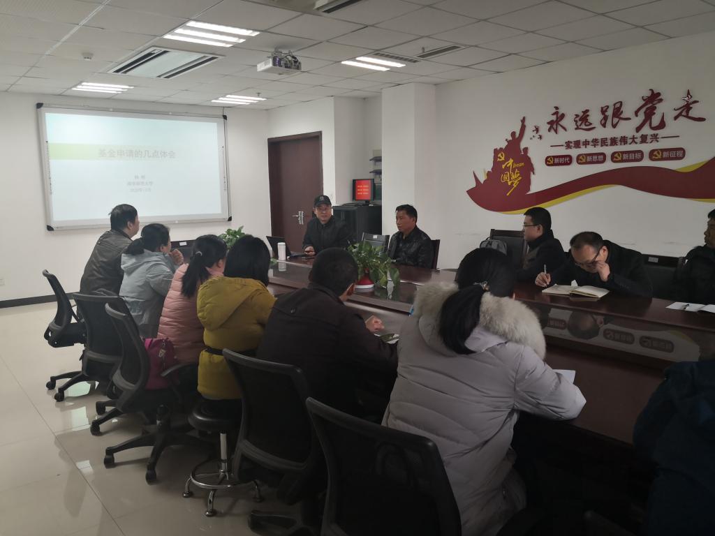 邀请南京师范大学博士生导师杨明教授作科研课题申报指导讲座。讲座由计算机学院副院长苏守宝教授主持,计算机学院教授、博士等骨干教师参加此次讲座。