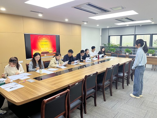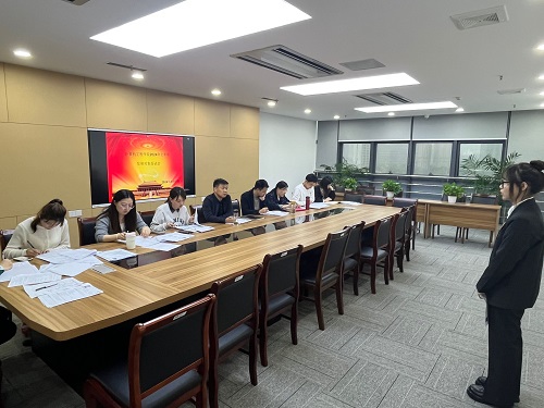 党委于2024年4月19日下午在科技楼2—523会议室召开了拟发展党员面试会。此次会议由学院党委副书记张昊,学生第一党支部书记周倩如,学生第二党支部书记胡鸣,辅导员鲁瑶、张秀良、李紫薇以及学生党员李迪担任评委。