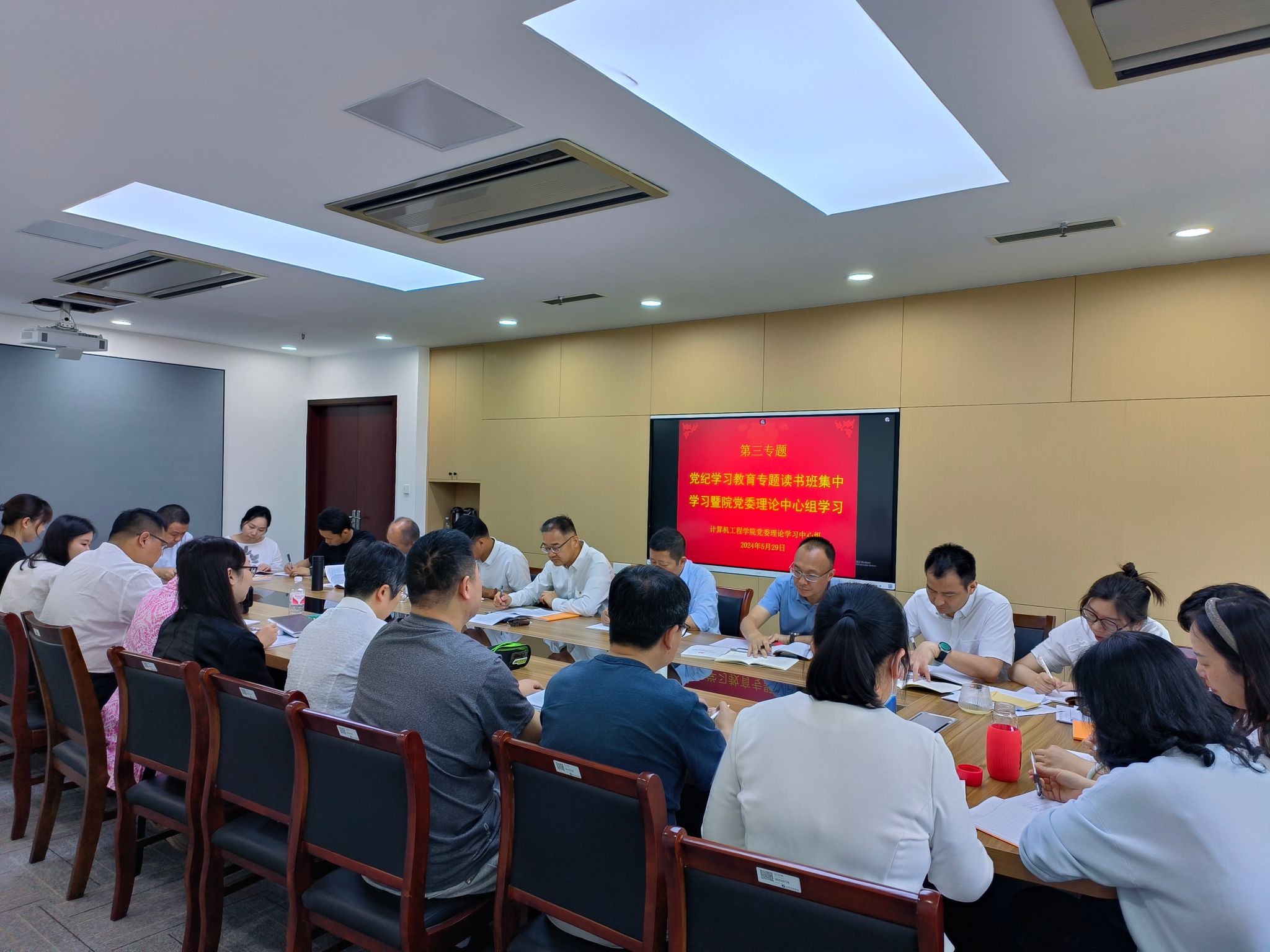 党委于5月29日上午在科技楼2-523会议室召开党纪学习教育专题读书班开班暨2024年党委第三次理论中心组学习。学院党委书记陈冠亚主持学习。