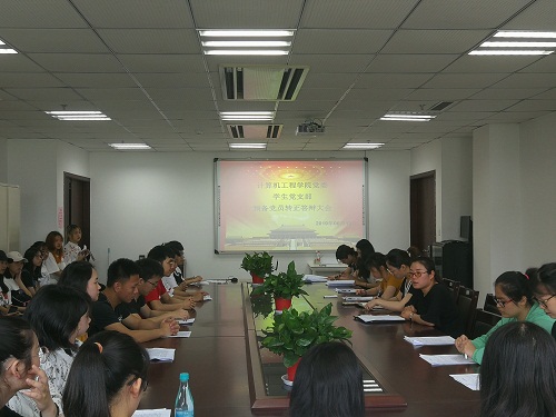党委学生党支部在科技楼2-523会议室召开2019年上半年预备党员转正答辩大会。院党委副书记陈莉莉,学生党支部书记周倩如,辅导员韩铖、鲁瑶出席大会。