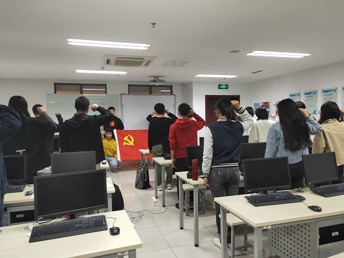 2、重温入党誓词:党支部书记带领党员现场开展入党宣誓活动