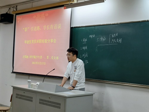 党委学生第一、第二党支部于5月17日举办了“‘职’引道路,学长有话说”毕业生党员求职经验分享会。学生第一党支部书记周倩如参加了活动。