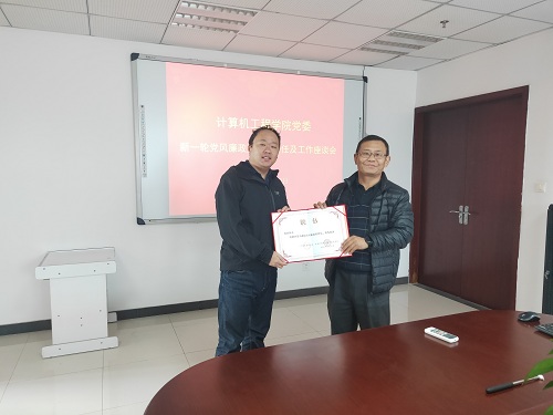 关于增补党风廉政监督员的决定》。陈冠亚、田祥宏、徐永华分别为增补的3名党风廉政监督员颁发了聘任证书。监督员们围绕学院党建、行政、教学、科研等展开了交流讨论。
