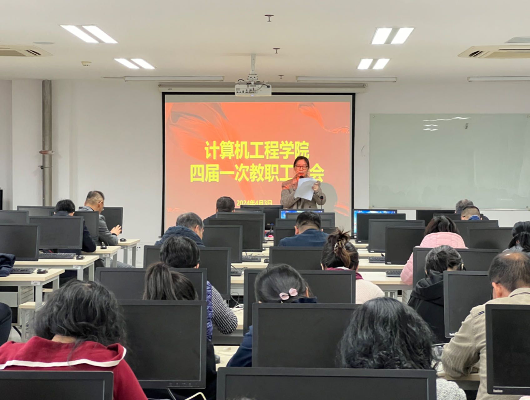 根据校工会的工作部署,计算机学院分工会于4月3日下午召开了四届一次教职工大会,进行分工会换届选举工作。