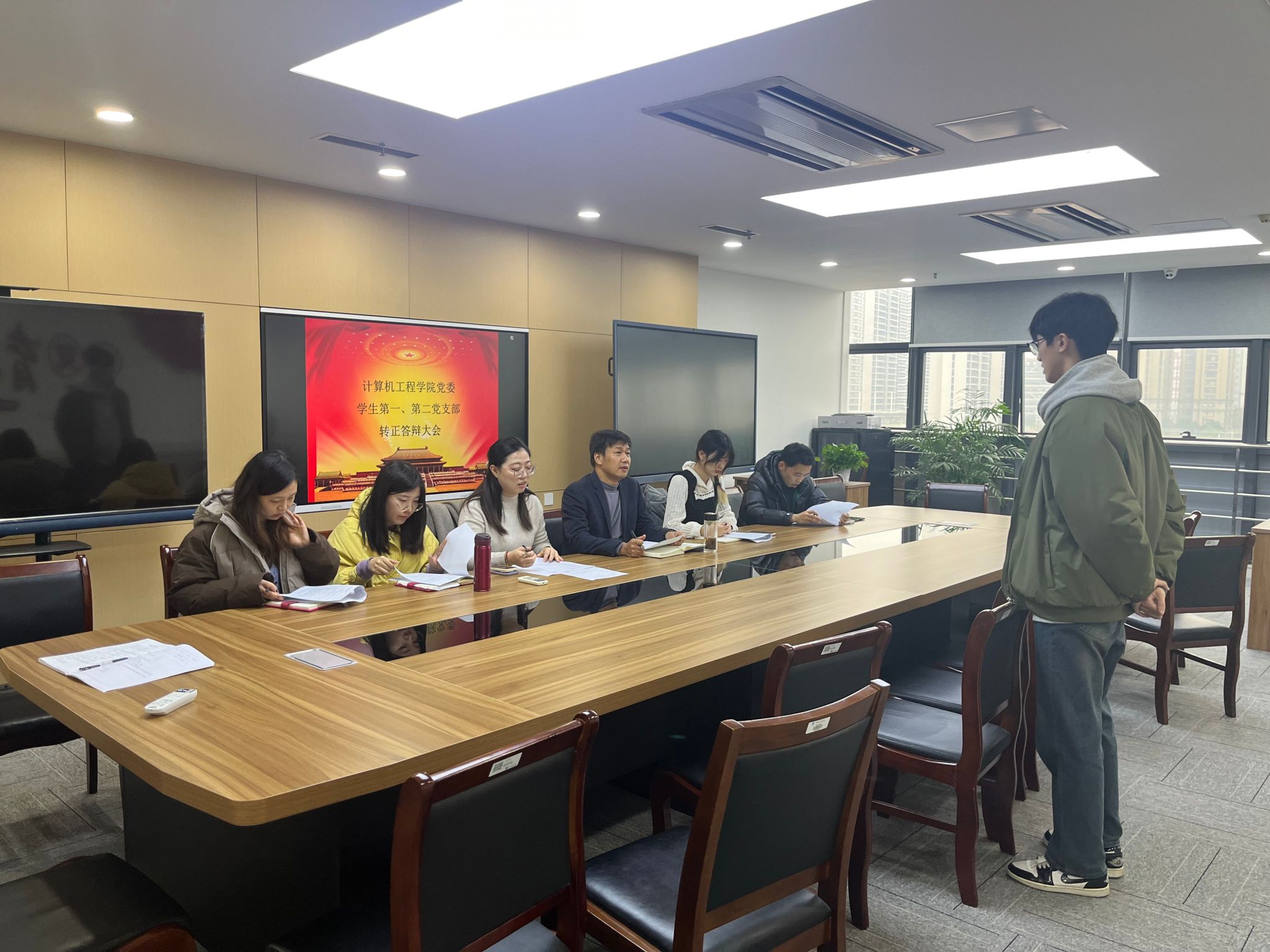党委学生第一、第二党支部在科技楼2-523室举行了预备党员转正答辩。会议由学生第一党支部书记周倩如老师主持,学院党委副书记张昊及全体辅导员老师共同参与答辩评审工作。