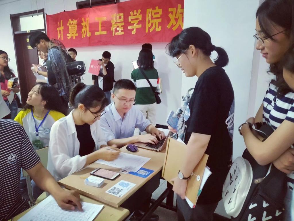 在大学生活动中心喜迎2019级新生入学报到。学院党委书记陈冠亚、院长朱勇、党委副书记陈莉莉、副院长徐永华深入迎新现场,辅导员李华婷老师、张晓雪老师、19级新生班主任、班助及全体志愿者在现场热情迎接新生到来。
