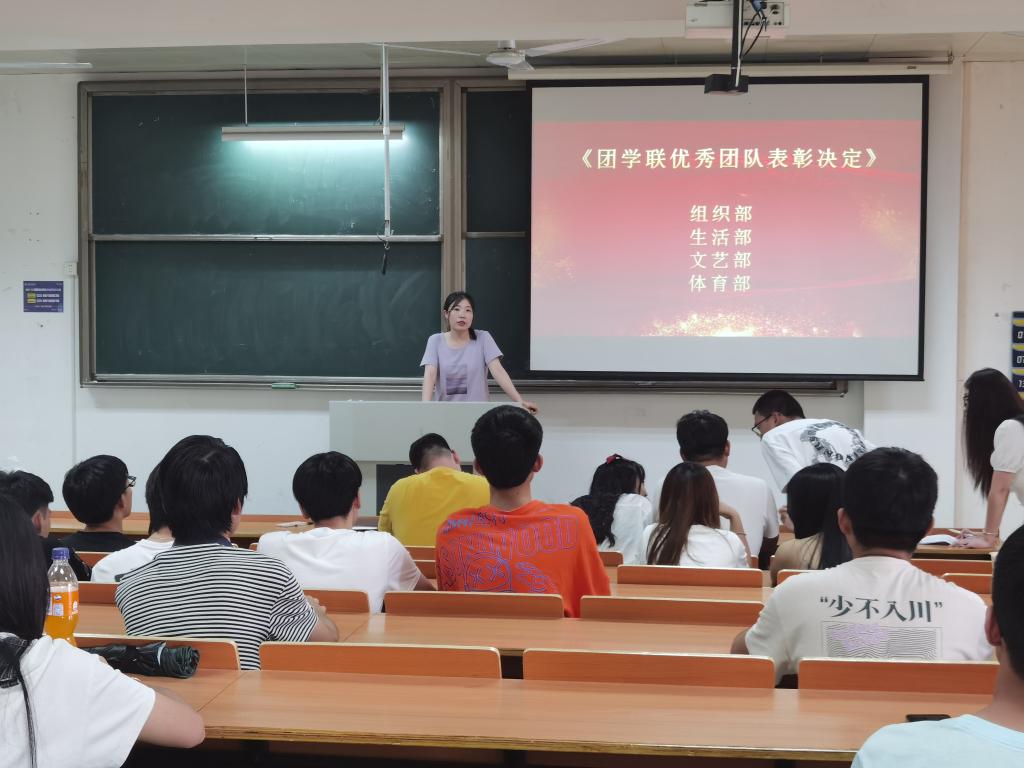 团总支于6月23日举行了表彰大会,对第四届团总支学生联合会中表现优秀的团队和学生干部个人进行表彰。院团总支书记张晓雪老师和第四届团总支学生联合会全体成员参加了会议。