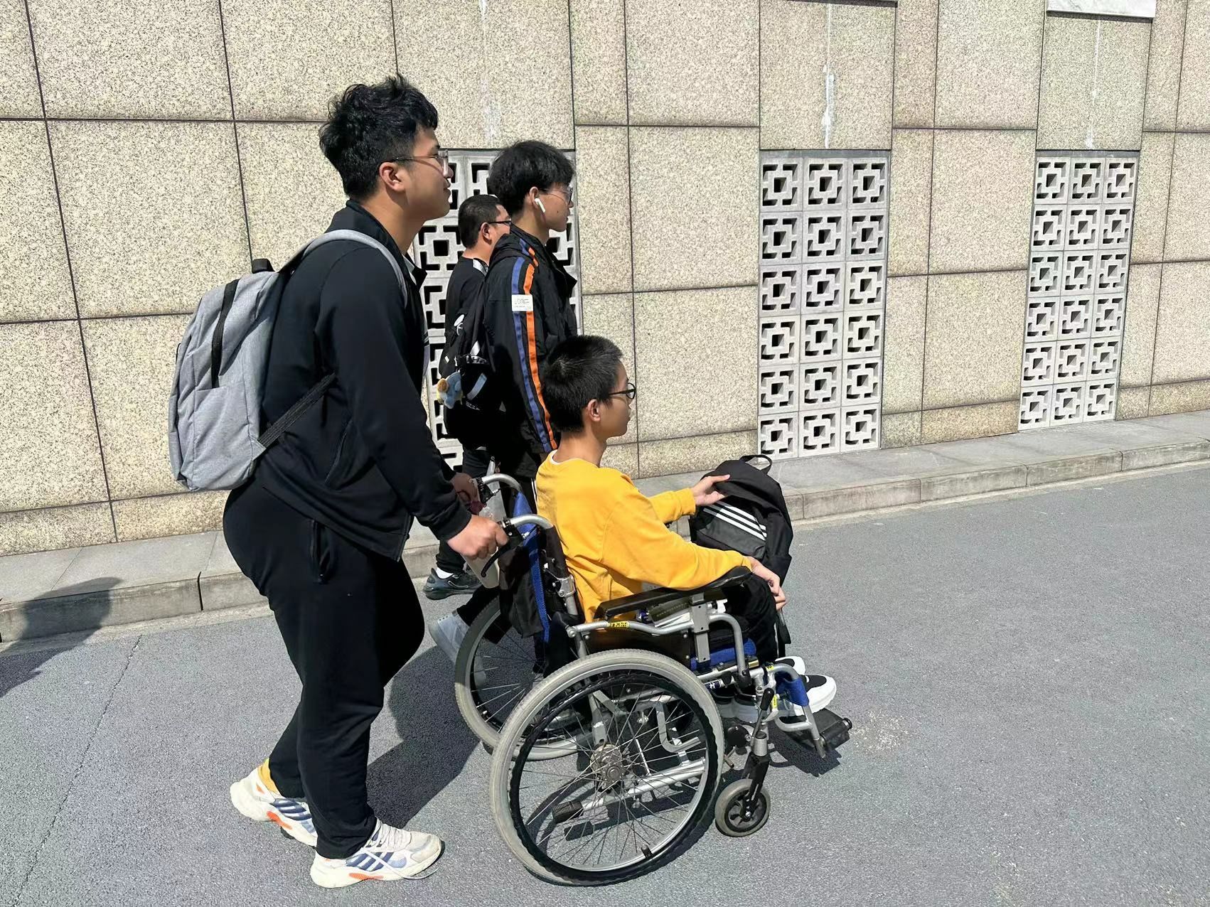 班主任朱俊老师,将班级男生编排为5个志愿服务小组,制定了详细的排班制度,帮助解决其上下课的爬楼问题。组织班级女生成立学业帮扶和生活关爱志愿服务小组,帮助他解决好生活中遇到的小麻烦。辅导员张秀良老师定期去宿舍走访,按照各级相关政策,指导周伟办理好“助、补、减”的相关工作。学院领导在节假日期间也深入宿舍,为其送去节日的关怀。特别是在学校领导和学工处、后勤总公司等职能部门的关心帮助下为其陪读的母亲,在大学陪读期间解决了临时的工作问题,解决了后顾之忧。