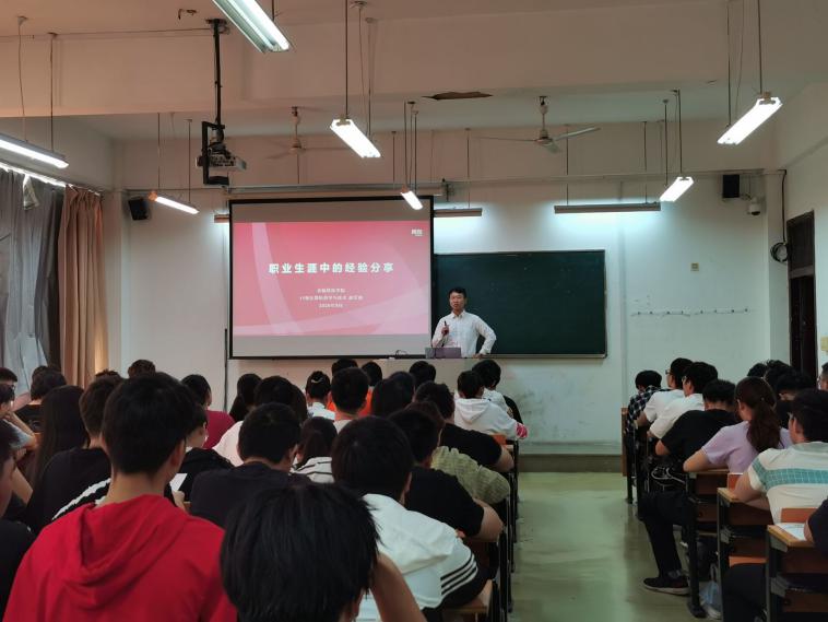 会议伊始,赵文睿学长就个人简历和第一、二份工作给同学们强调了拥有扎实基础知识的重要性。指出实际工作中需要抱着认真严谨的理工科态度,摒弃不切实际的幻想,注重企业和社会的需要,明确自己的目标,才能更好地提升自己的价值。