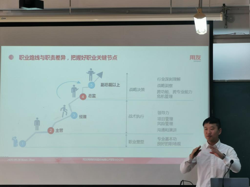 校友会邀请用友集团高级售前工程师,2015届校友赵文睿学长,在1209教室给成人导航