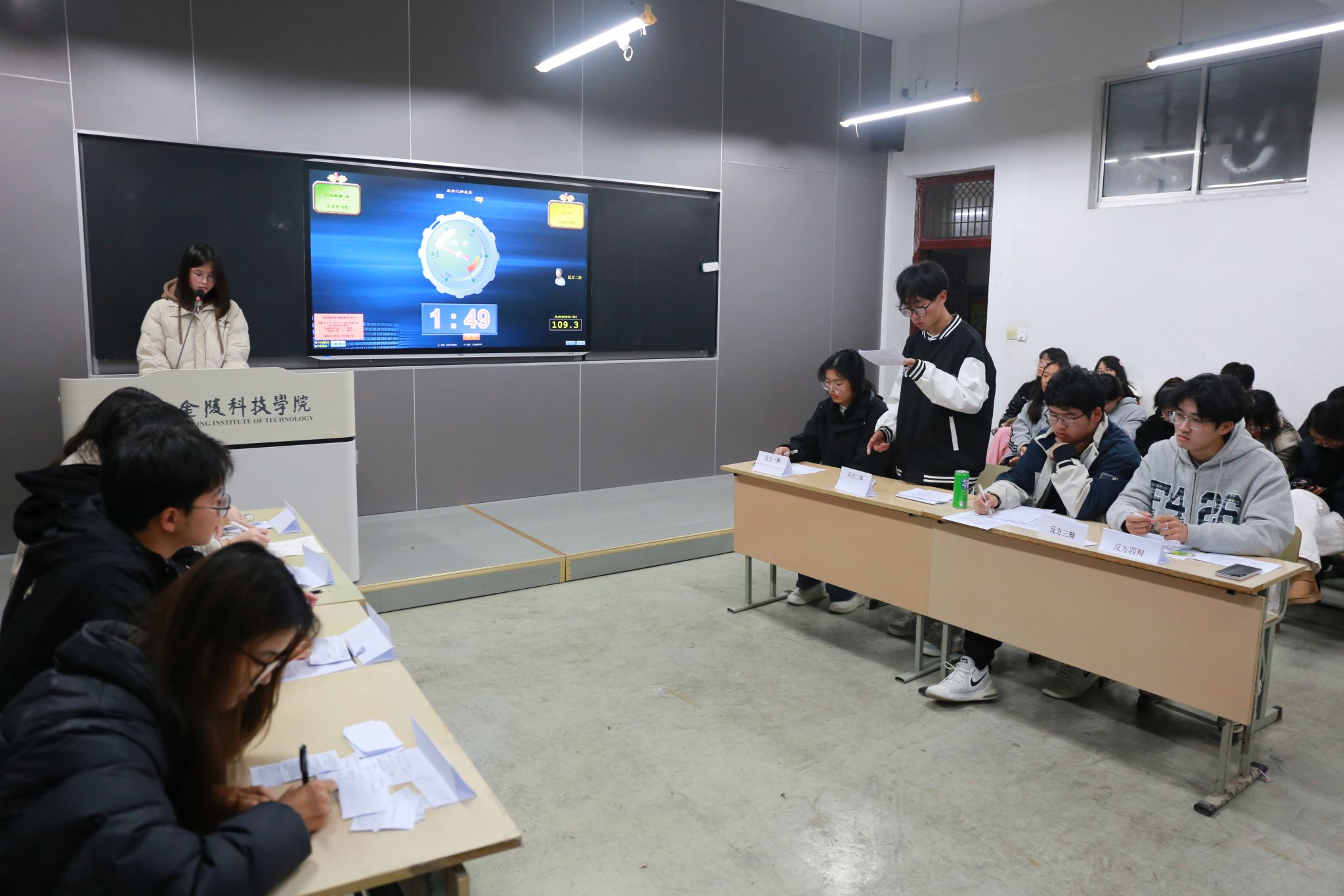 于12月13日周五晚在北区2210 教室举办了冬季辩论赛决赛。本次辩论赛于 11月2日启动,全院12个班级的辩手积极组队报名参加。历经五轮共 10 场次的激烈比拼,24 计算机科学与技术(2)班和 24 数据科学与大数据技术(2)班的两组辩论队脱颖而出进入决赛。