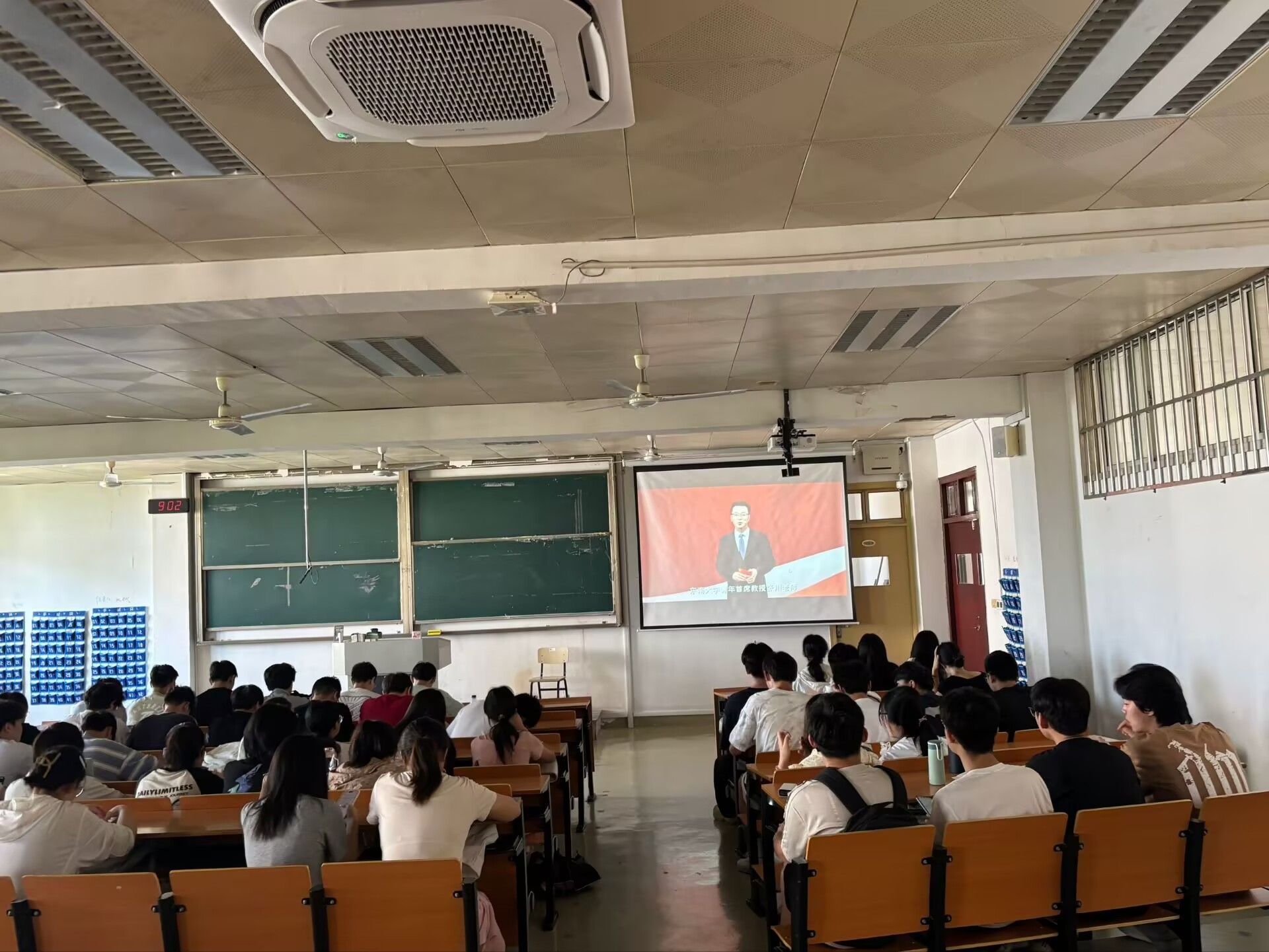 组织学生在1432教室集中观看2025江苏高校“开学第一课”。