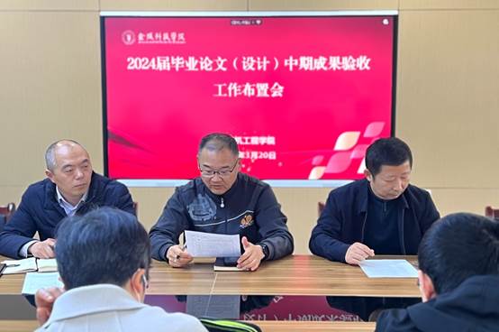 召开毕业论文(设计)中期成果验收工作布置会。学院党委书记陈冠亚、院长胡勇出席会议并讲话,副院长王强主持会议,各答辩组组长参加会议。