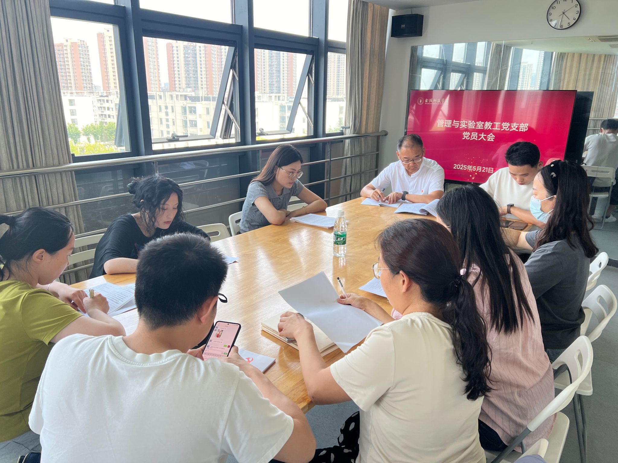 管理与实验室教工党支部在科技楼2号楼522会议室召开党员大会,开展党员自我检查及问题查摆工作。